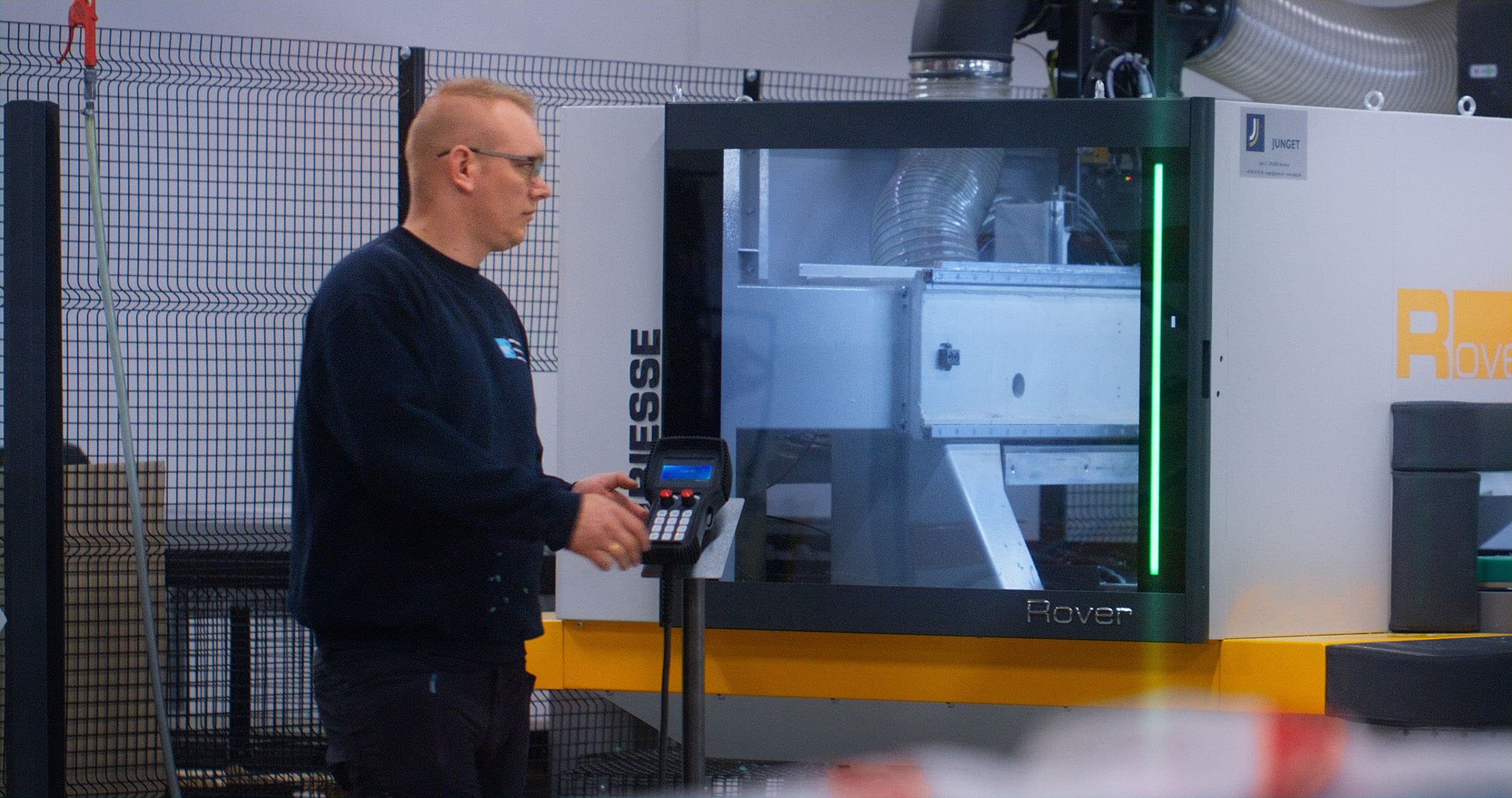 Her ses en medarbejder ved den nye CNC-fræser, som er et led i Bornteks bæredygtighedsplan.