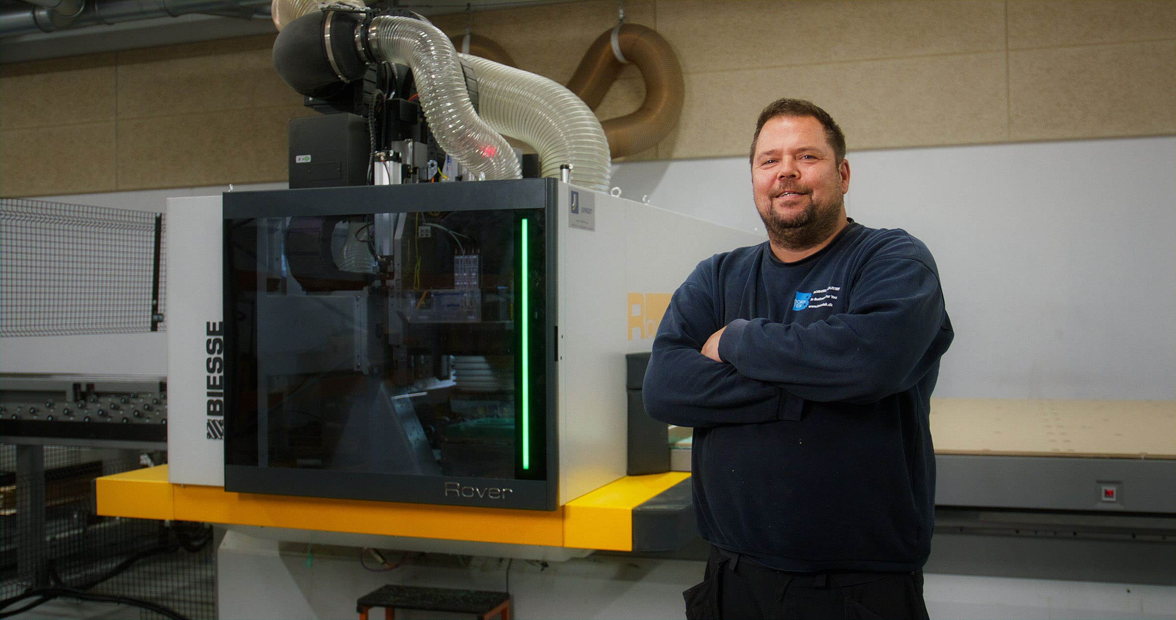 Casper Poulsen ved den nye CNC-fræser, som optimerer spild og giver et nyt forretningsområde for virksomheden.