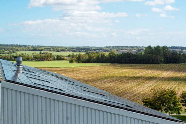 300 stk. solceller på 60kW på taget bidrager til omkring 70 procent af strømforbruget hos Lehnsgaard.