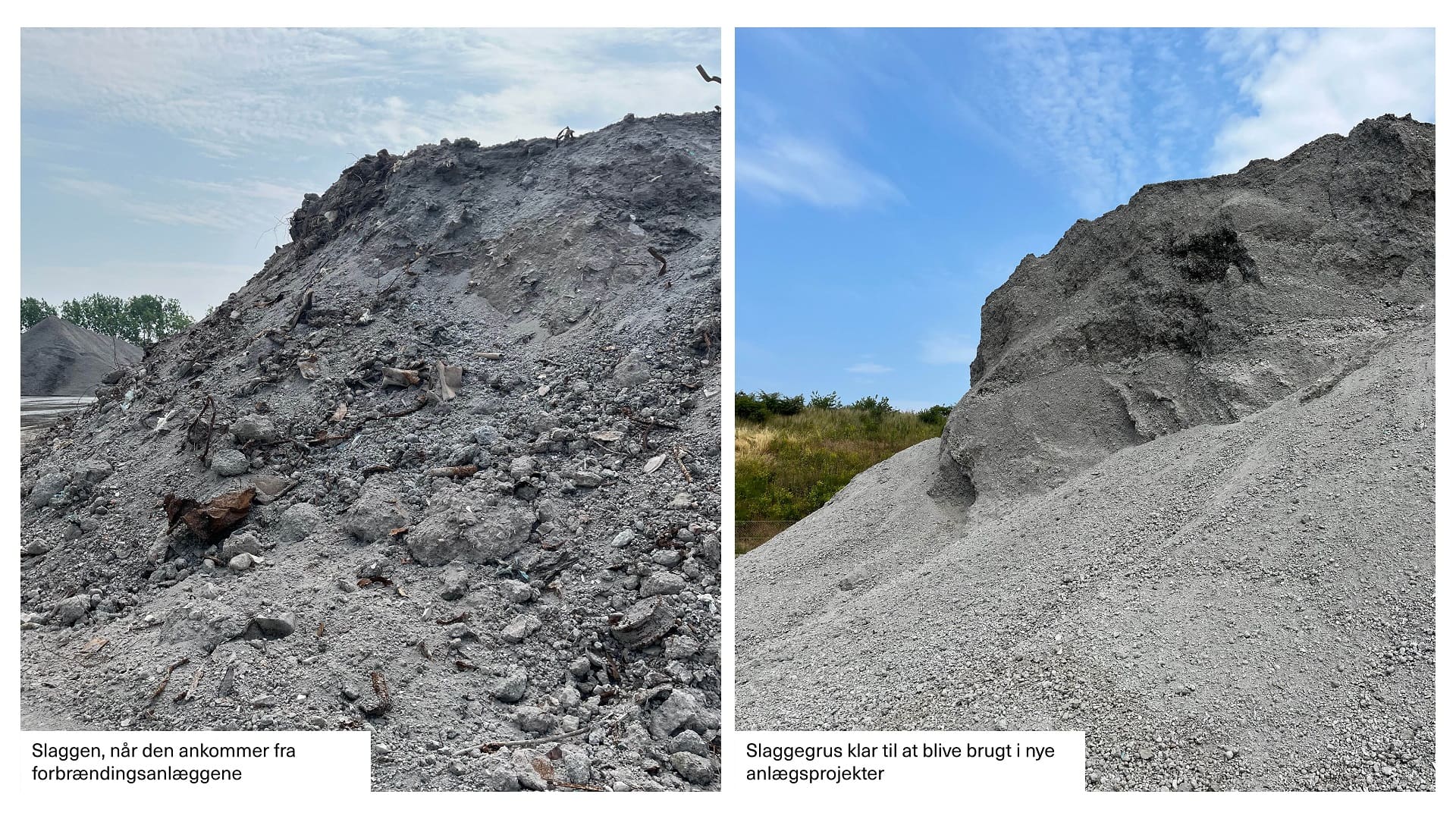 Restaffald fra virksomheder og husholdninger bliver udnyttet til energiproduktion på landets forbrændingsanlæg. Men processen efterlader et restprodukt — den såkaldte slagge. Slaggen kan, med den rette behandling, forvandles til et gruslignende produkt, der blandt andet kan bruges til at bygge veje og dermed erstatte nye råstoffer.