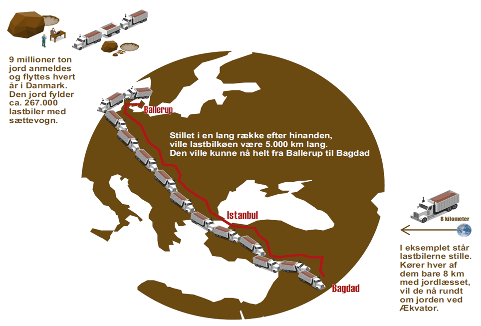 Når kommunen graver et hul i forbindelse med byggeri og anlæg, bliver jorden sjældent brugt til at fylde det igen. Ofte kører entreprenøren jorden væk som affald. Når hullet skal lukkes, køber kommunen i stedet nyt sand og grus, som for eksempel transporteres fra Aalborg eller suges op fra havbunden i Køge Bugt.