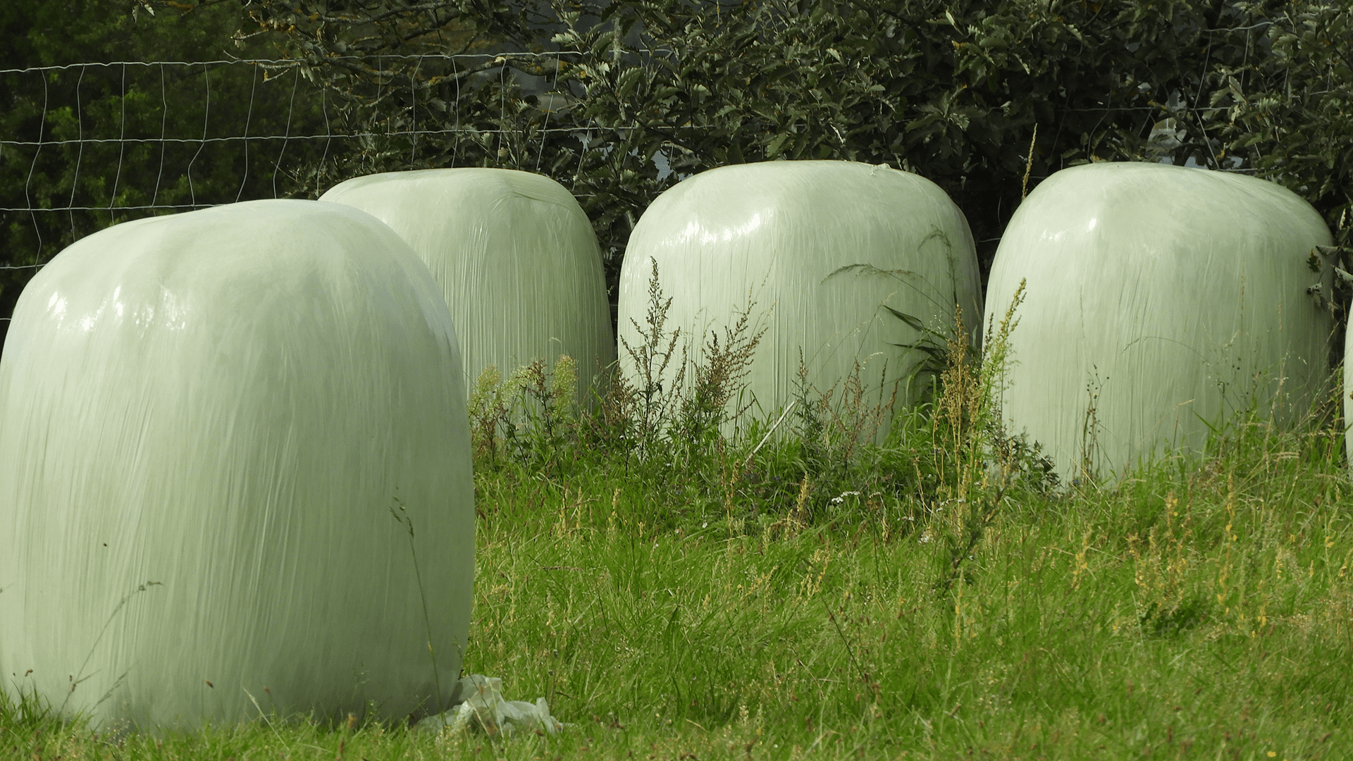 Gamle wrapballer med langt græs, som har stået ude længe, har begrænset eller ingen værdi.
